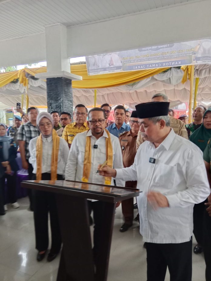 suaralintas.com II Biro Kabupaten Lahat, Bupati Lahat dan Wakil Bupati dihadiri kedatangan Kunjungan Kerja Wakil Kepala Staf Kepresidenan RI, Muhammad Qodari.meresmikan Kantor Camat Jarai Kabupaten Lahat Sumatera Selatan yang baru, pada hari Kamis tanggal, 24 April 2025.