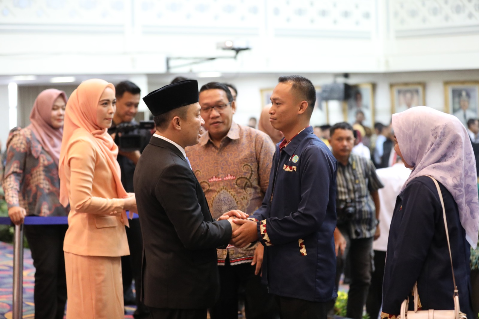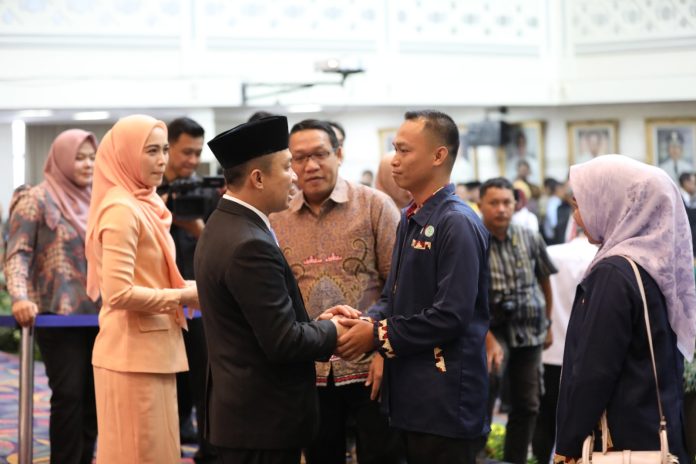suaralintas.com IIBandar Lampung-Pesawaran, Ketua Pengurus Wilayah Ikatan Wartawan Online (IWO) Provinsi Lampung, Aprohan Saputra, M.Pd., menghadiri prosesi pelantikan Sekretaris Daerah Provinsi (Sekdaprov) Lampung, H. Marindo Kurniawan, S.T., M.M., yang digelar di Balai Keratun, Kantor Gubernur Lampung, Jumat (20/6/2025).
