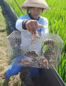 Klaten suaralinta kades Jurangjero Karanganom Klaten Ali Murtopo serius menangani hama tikus di wilayahnya . berbagai metode untuk memberantas tikus di cobanya, saat ini kami sedang mencoba dengan metode jebak dan cukup berhasil. Setiap jebakan bisa menangkap 5-7 ekor tikus.kalau sistem jebakan ini melibatkan penandaan lubang tikus dengan teliti, kemudian memasang jebakan di lubang masuk dan menyumpal lubang keluar. Selain itu, digunakan juga metode lain seperti pengasapan dengan belerang atau mercon untuk mengusir tikus. Setelah proses pengasapan, lubang-lubang tikus ditutup kembali untuk mencegah mereka keluar dan mencari jalan lain. Metode ini menunjukkan upaya sistematis dalam mengendalikan populasi tikus di daerah tersebut.(mr 35)