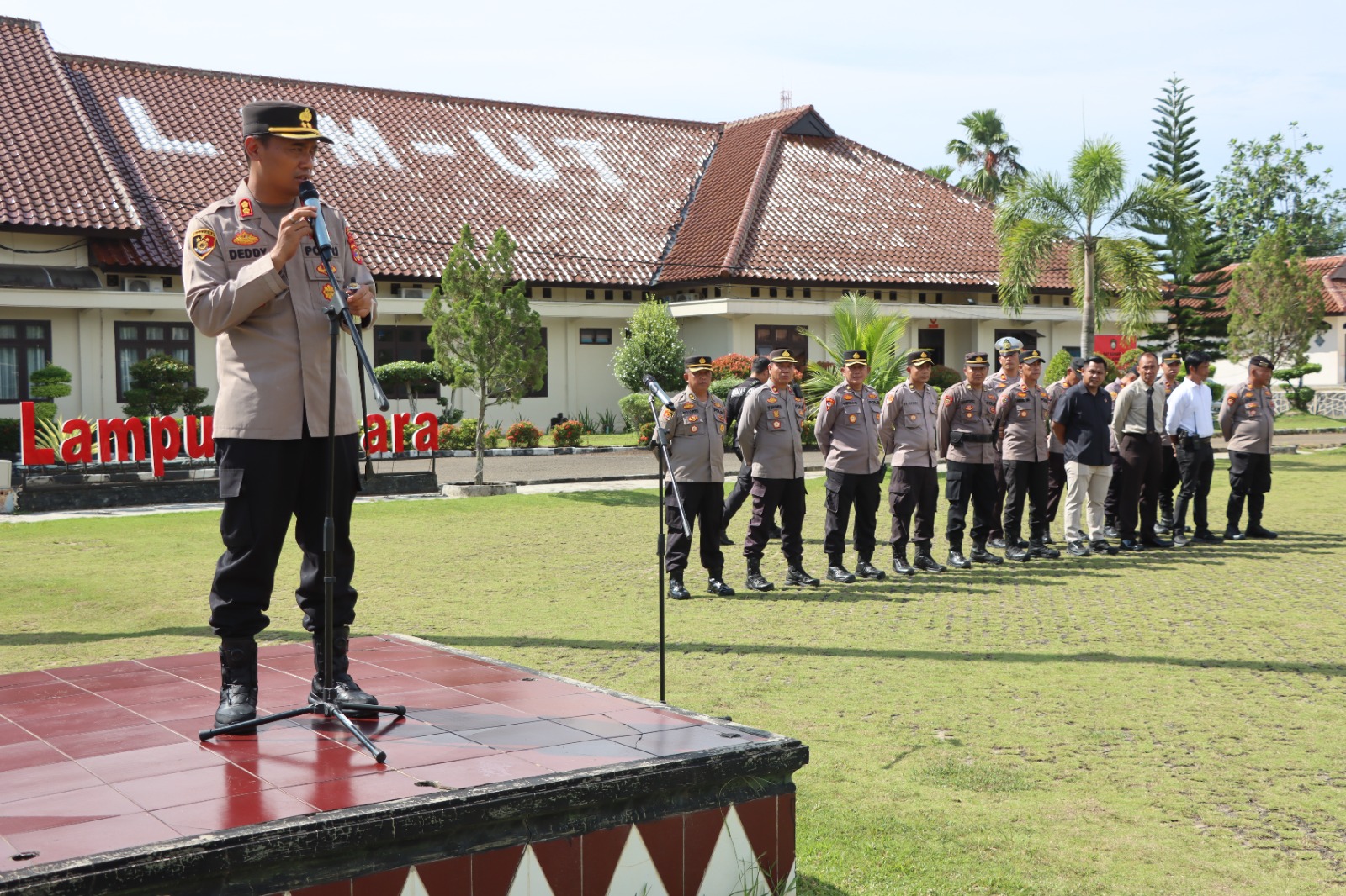 Kegiatan diawali apel pengecekan personil yang di laksanakan di halaman mako Polres Lampung Utara dan dilanjutkan app oleh Kapolres Lampung Utara AKBP Deddy Kurniawan.