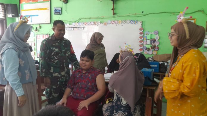 Dalam kegiatan tersebut, Babinsa Sertu Alex Suparto turut membantu kelancaran pelaksanaan imunisasi, mulai dari pengaturan siswa, pendampingan tenaga kesehatan, hingga memberikan rasa aman dan nyaman selama kegiatan berlangsung. Pendampingan ini merupakan wujud sinergitas TNI dengan tenaga kesehatan dalam mendukung program pemerintah di bidang kesehatan masyarakat.