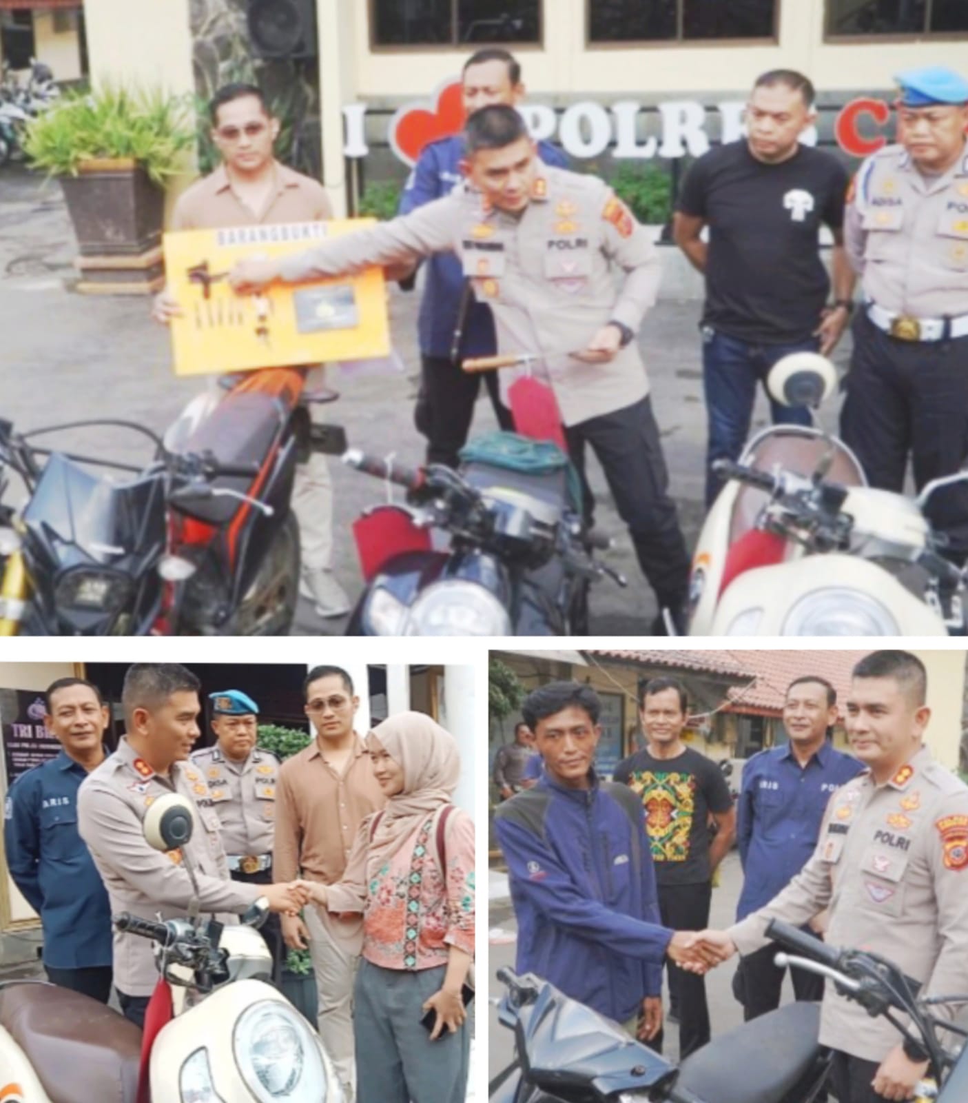 Ditambahkan Kapolres, sepeda motor yang telah ditemukan tersebut langsung diserahkan ke pemilik aslinya tanpa biaya sepeserpun (gratis)