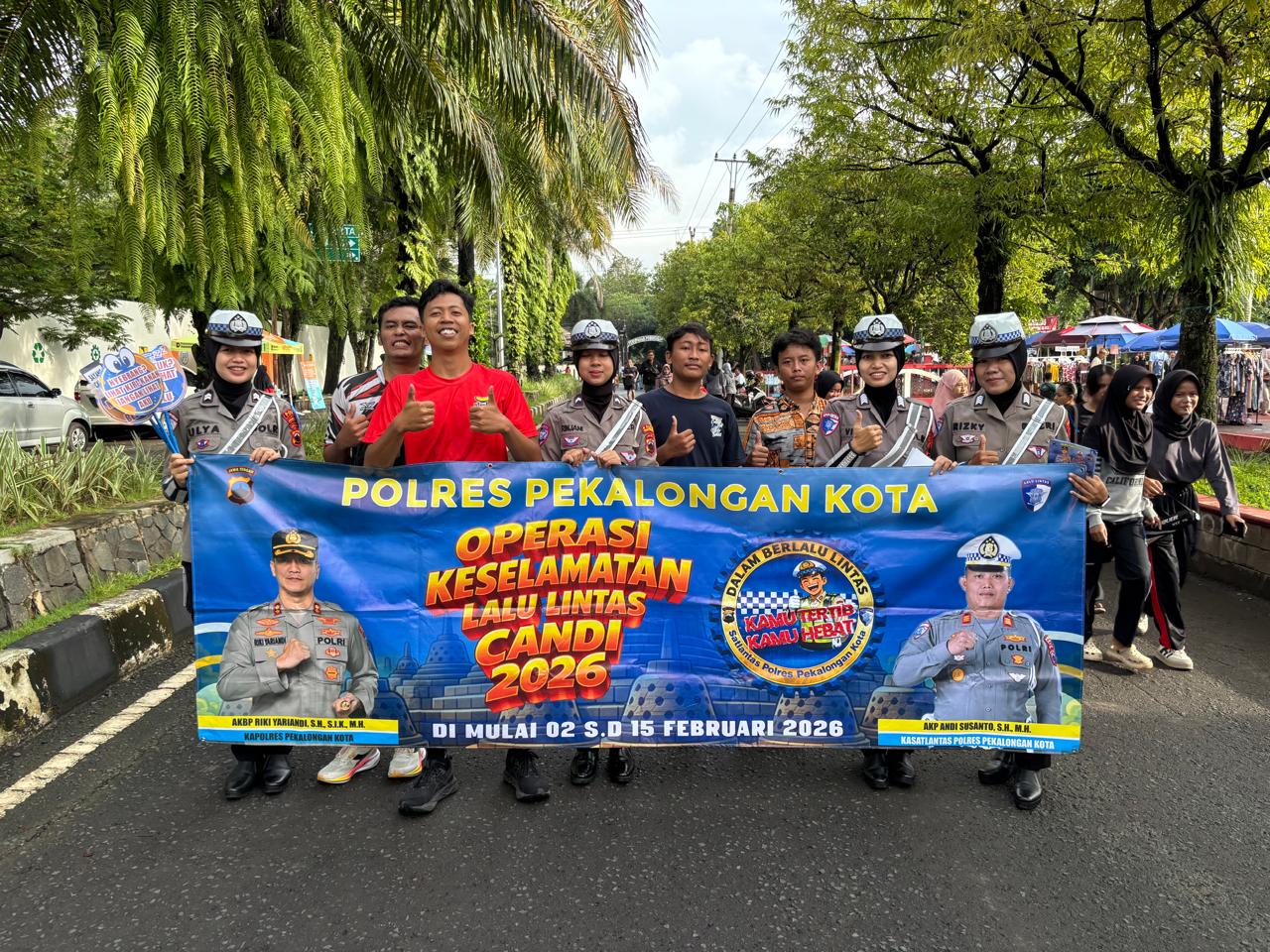 Dalam kesempatan tersebut, petugas juga menginformasikan kepada masyarakat melalui brosur dan MMT bahwa Polres Pekalongan Kota saat ini sedang melaksanakan Operasi Keselamatan Candi 2026 yang berlangsung selama 14 hari, terhitung mulai tanggal 2 hingga 15 Februari 2026.