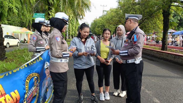 Satgas Kamseltibcarlantas Operasi Keselamatan Candi 2026 Polres Pekalongan Kota melaksanakan kegiatan Art Policing di lokasi Car Free Day (CFD) Lapangan Mataram Kota Pekalongan, Minggu (8/2/2026) pagi.