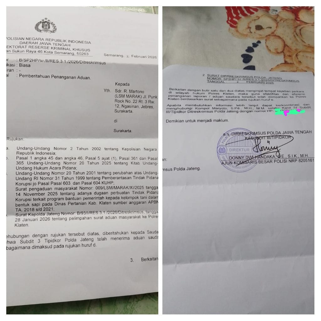 “Aduan kami sudah ditindaklanjuti dan saat ini penanganannya dilimpahkan ke Polres Klaten,” ujar Martono, Senin (9/2/2026).