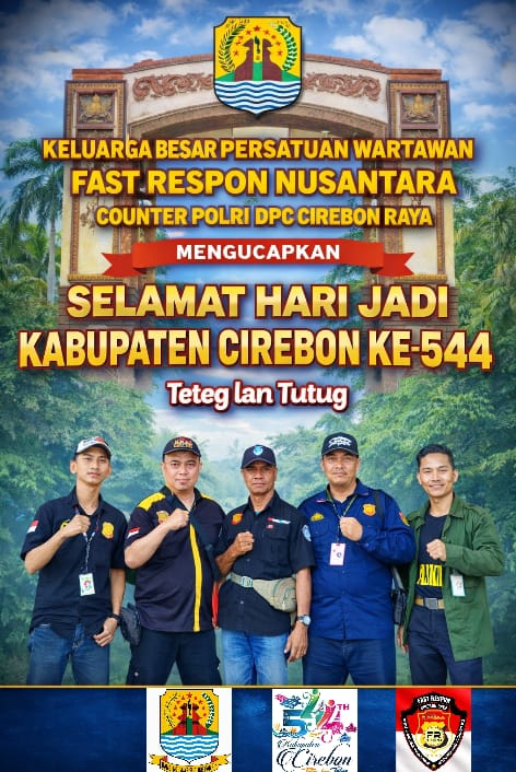 – Persatuan Wartawan Fast Respon Nusantara (PW-FRN) Counter Polri yang diketuai oleh Ridho R, yang akrab disapa Bang Ridho, menyampaikan ucapan selamat Hari Jadi Kabupaten Cirebon ke-544 yang diperingati pada Kamis, 2 April 2026.